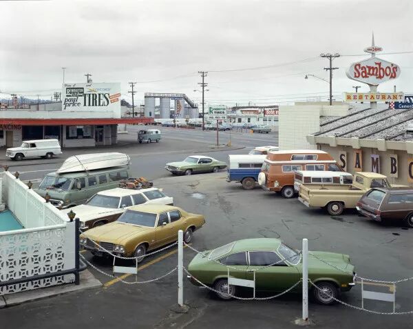 肖爾曾經說:“……它們(新聞媒體)不會報道日常生活中的平常事情……但這世界遠比新聞報道更加豐富多彩……美國文化也不僅僅只是越戰和反戰……美國不止這些,我對生活中的小事件感興趣。”1970年代,黑白照片仍是藝術攝影的主要形式,風景、人像和新聞紀實攝影已經達到一個高度,人們對脫胎于新聞攝影的“決定性瞬間”制造的巧合和情緒爆點津津樂道。而“決定性瞬間”,以及決定性瞬間背后關于陌生感和戲劇性等圖像審美取向,對于肖爾來說統統不成立,更不用說夸張絢麗的明信片風光片。